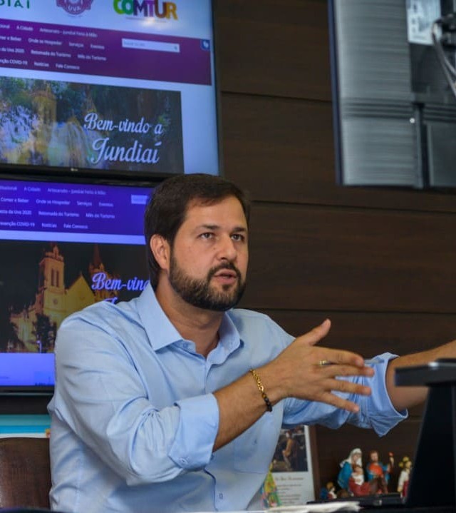 O prefeito Luiz Fernando Machado participou nesta segunda-feira (8), de mais uma reunião para alinhamento da apresentação do Distrito Turístico Serra Azul, que tem lançamento confirmado para o dia 29 de novembro, no Wet’n Wild, em Itupeva. O evento será organizado pelas Prefeituras de Jundiaí, Itupeva, Louveira e Vinhedo, além do parque aquático e do Complexo Serra Azul, em parceria com a Secretaria de Turismo e Viagens do Estado de São Paulo, e seguirá todos os protocolos de segurança sanitária.