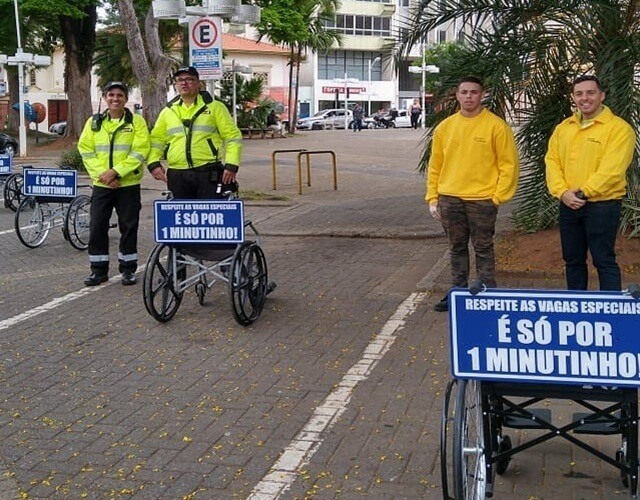 O objetivo é conscientizar os motoristas a respeitarem às vagas de deficiente físico com a mensagem “parei só por um minutinho”, que é geralmente a desculpa usada por motoristas no uso indevido das vagas especiais.