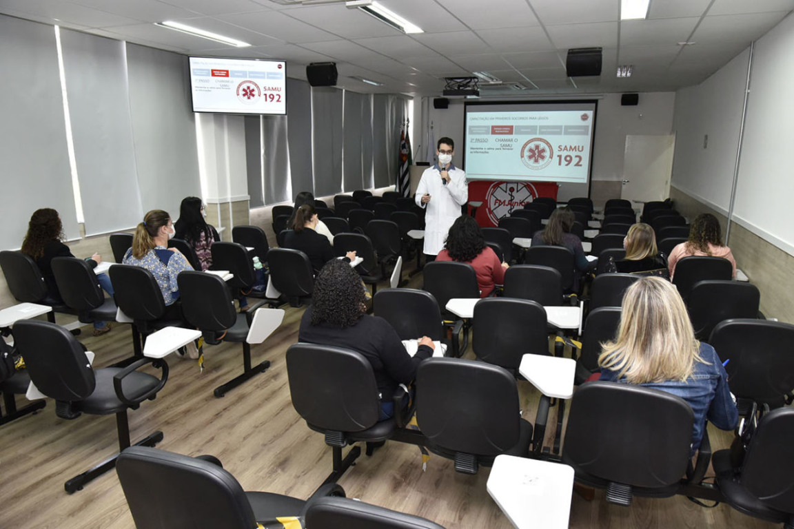 Tornar as escolas da rede municipal de Jundiaí um lugar mais seguro em eventuais ocorrências emergenciais, esse é o objetivo do Curso de Primeiros Socorros, para diretores da rede municipal de ensino, promovido pela FMJúnior, apoiada pela Faculdade de Medicina de Jundiaí, em parceria com a Unidade de Gestão de Educação (UGE) e articulação da Rede Jundiaí de Cooperação, vinculada à Unidade de Gestão de Governo e Finanças (UGGF), que teve início nesta sexta-feira (8).