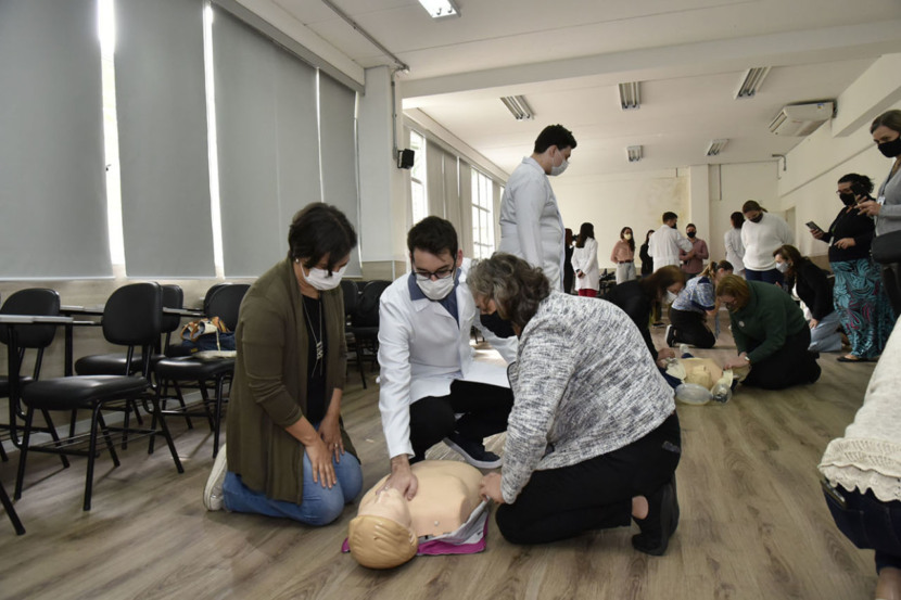 Participam do curso 200 diretores, coordenadores e assistentes de escolas do Ensino Fundamental da rede municipal, divididos em duas turmas. Dentre os temas abordados, os participantes aprendem sobre parada cardiorrespiratória, engasgos, crises convulsivas e queimaduras. Os educadores treinam manobras de salvamento em manequins com sensores, o que aprimora a técnica aprendida.
