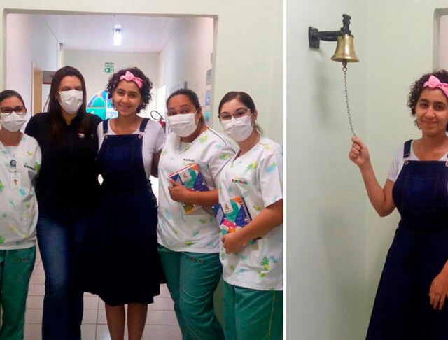 O Hospital da Criança do Grendacc, em Jundiaí, passou por mais um momento marcante de muita alegria neste mês de agosto. A paciente Ellen Cristina Lopes da Silva, de 16 anos, tocou o sino para simbolizar o final de seu tratamento.
