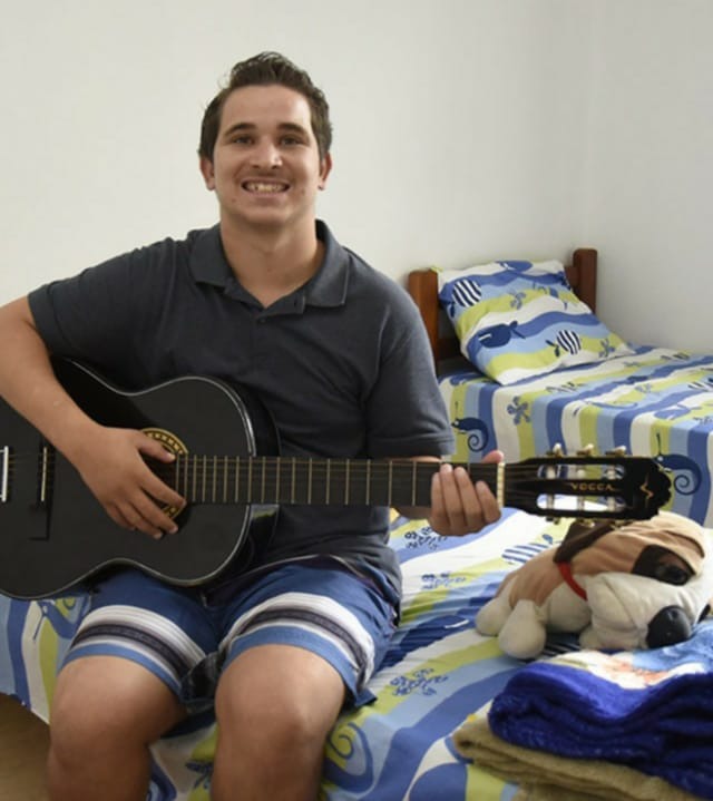 O jovem Jair Santos, de 18 anos, é um dos acolhidos, junto com seu irmão João, um ano mais velho e que atualmente trabalha num restaurante de fast food. “De zero a dez, a nota que dou para o serviço é cem. No momento não trabalho, então ajudo a cuidar da arrumação da casa e dos jardins”. E compartilha dois sonhos. “Gostaria de virar ou mecânico de moto ou cantor de funk romântico, por isso estou aprendendo a tocar violão”, compartilha o jovem.