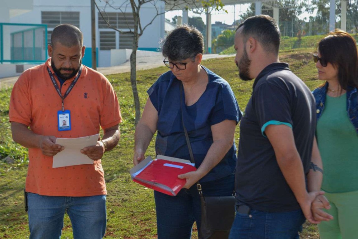 A EMEB dos Sonhos Anézio de Oliveira, localizada na Vila Marlene, está em fase final de obras e o parque da escola começa a receber as intervenções e a instalação de brinquedos de madeira. Como parte das etapas da obra, as equipes da Unidade de Gestão de Educação (UGE) e da Unidade de Gestão de Infraestrutura e Serviços Públicos (UGISP) estiveram no local, na manhã de segunda-feira (18) para alinhar os próximos passos. A visita também foi acompanhada pelo vereador Edicarlos Vieira.