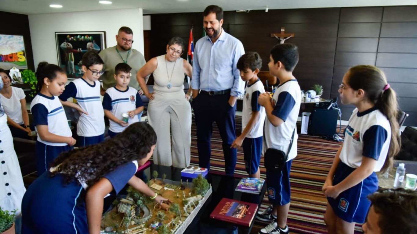 Na manhã de quarta-feira (13), o prefeito Luiz Fernando Machado recebeu estudantes da EMEB Ivo de Bona, do Parque Residencial Almerinda Chaves. Os alunos apresentaram o projeto e ideias para revitalização de bosque próximo à escola. A iniciativa partiu das próprias crianças, que ao observarem a área, identificaram a oportunidade de recuperar o espaço e transformar em parque. O encontro contou com a participação do vereador Daniel Lemos.
