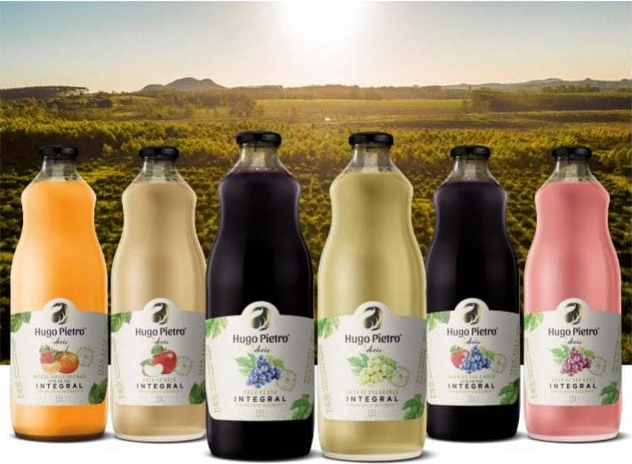 Sucesso entre os consumidores, os sucos integrais da marca Hugo Pietro, produzidos no sul do Brasil, com frutos selecionados, sem adição de açúcares, trazem ao paladar o frescor e a pureza de frutas maduras e sadias. Entre os sabores estão o de uva tinto, uva rosado, maçã com uvas brancas, tangerina com acerola e maçã, laranja, uva com mirtilo, uva com açaí, e muitas outras opções refrescantes. Não deixe de escolher e provar!