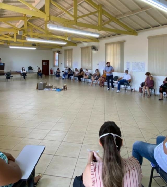 A reunião contou com a presença de aproximadamente 40 membros da nova equipe, do gestor da Unidade de Gestão de Promoção da Saúde (UGPS), Tiago Texera e da diretora da Atenção Básica, Andreia Pinto de Souza.