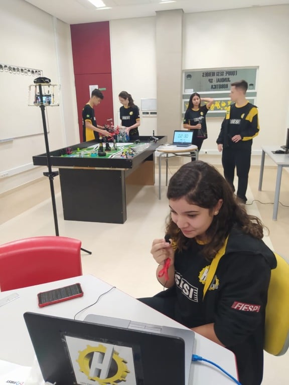 O time de robótica, que é composto por integrantes de 13 a 15 anos, teve a oportunidade de ser uma das equipes representantes do nosso país no campeonato da First Lego League, onde jovens de 9 a 16 anos constroem e programam robôs para vencer desafios, criam projetos inovadores para resolver problemas do mundo real e desenvolvem a capacidade de trabalhar em grupo.