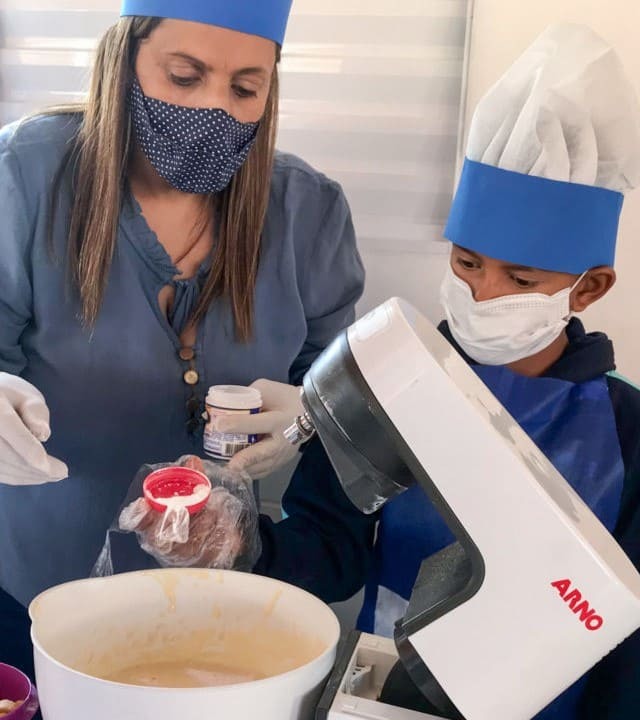 Vestidos com touca e avental, dividindo as funções para colocarem a mão na massa, os alunos aprovaram e se divertiram com a atividade. “Quando a professora falou que faríamos a receita do bolo de banana, fiquei muito feliz, estávamos estudando sobre ela numa lição”, contou, empolgada, a aluna Maria Luiza Cavalcante Silva.
