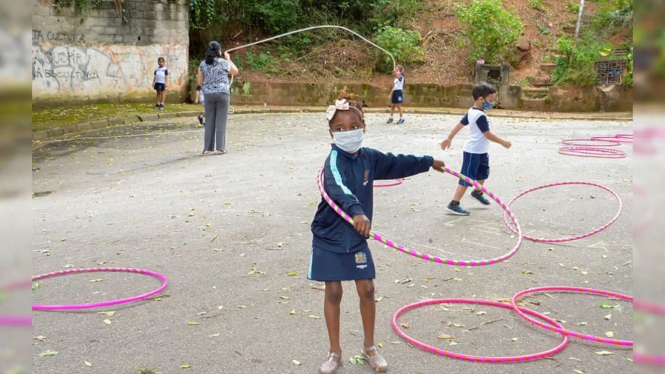 Que crianças são fascinadas em brincar, todo mundo já sabe e na EMEB Judith Arruda Carreta, nas turmas do G4 e G5 não é nada diferente. Por meio do programa “Ruas de Brincar” e do projeto “Brincar é Natural – infâncias, natureza e o sentir (se) humano”, os pequenos foram até a rua ao lado da escola, onde estavam organizados, entre as estações de brincadeiras, os bambolês, cordas e carrinhos de rolimã, para eles vivenciarem esse momento reunidos.