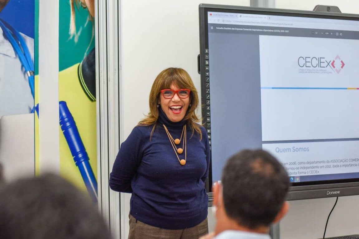 A palestra foi ministrada pela presidente do CECIEX, Damaris Eugenia Avila da Costa. Ela é membro da Associação Comercial de São Paulo (ACSP), pós graduada em marketing, com especialização em marketing internacional e atua com comércio exterior desde 1979, na promoção comercial e abertura de novos mercados, com foco no continente africano e oriente médio.