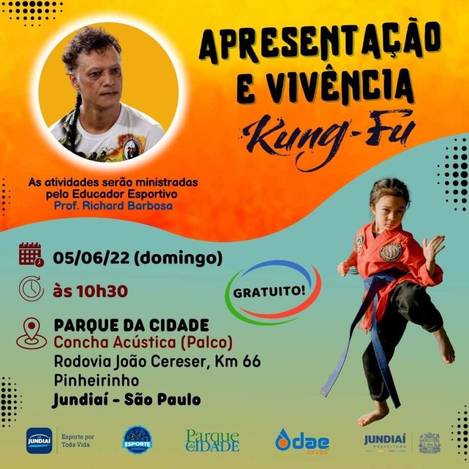 Seguindo com a programação da ação “Esporte Jundiaí no Parque”, o Parque da Cidade receberá, neste domingo (5), uma apresentação e vivência da modalidade Kung-Fu ministrada pelo Educador Esportivo Richard Barbosa do TIME Jundiaí.