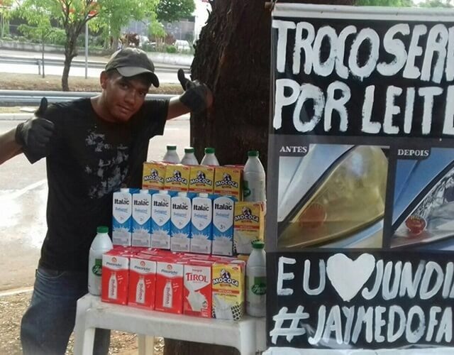 Neste domingo (27), Jayme promoveu mais uma ação solidária, mas desta vez para ajudar ONGs (Organizações Não Governamentais) da região. Ele trocou mão de obra por leite, ou outros tipos de donativos.