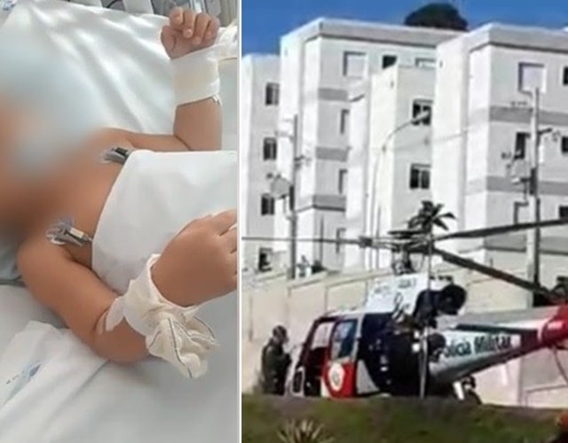 No local, os médicos realizaram todos procedimentos para que a criança pudesse ser transportada com vida pelo Águia.