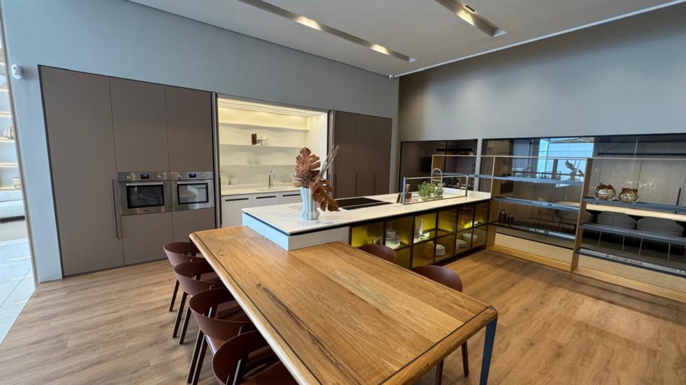 Outro grande diferencial da Fabrilis é a tecnologia embarcada em seus projetos. O showroom de Jundiaí destaca soluções inteligentes para otimização de espaços, como a penteadeira iluminada que se transforma em uma bancada de estudos ou trabalho.