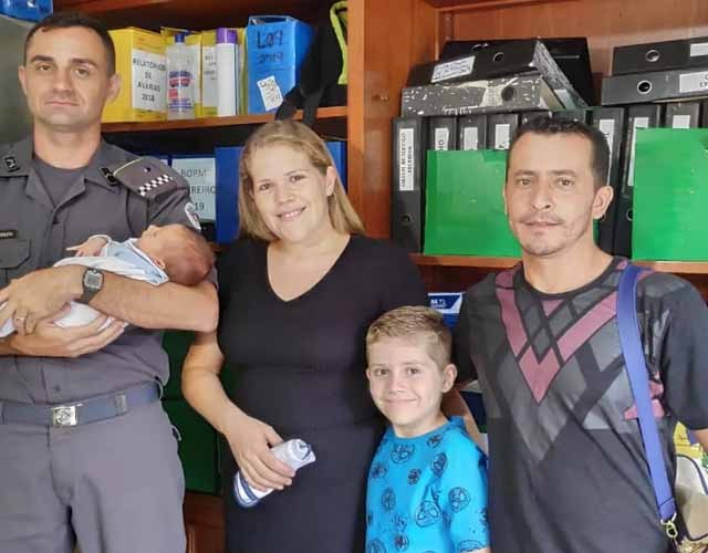 Ela foi até a base da Polícia Militar na hora do desespero, sem saber o que fazer para salvar o seu filho. Na hora em que chegou, o policial Rodolfo de Campos Farias prontamente auxiliou no salvamento do recém-nascido. Ele pegou a criança, fez a manobra e o menino começou a voltar a respirar.