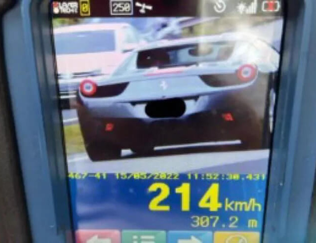 No último domingo (15), uma Ferrari foi flagrada a 214 km/h na Rodovia Dom Gabriel Paulino Bueno Couto, em Jundiaí. De acordo com a polícia, a velocidade permitida no trecho é de 100 km/h.