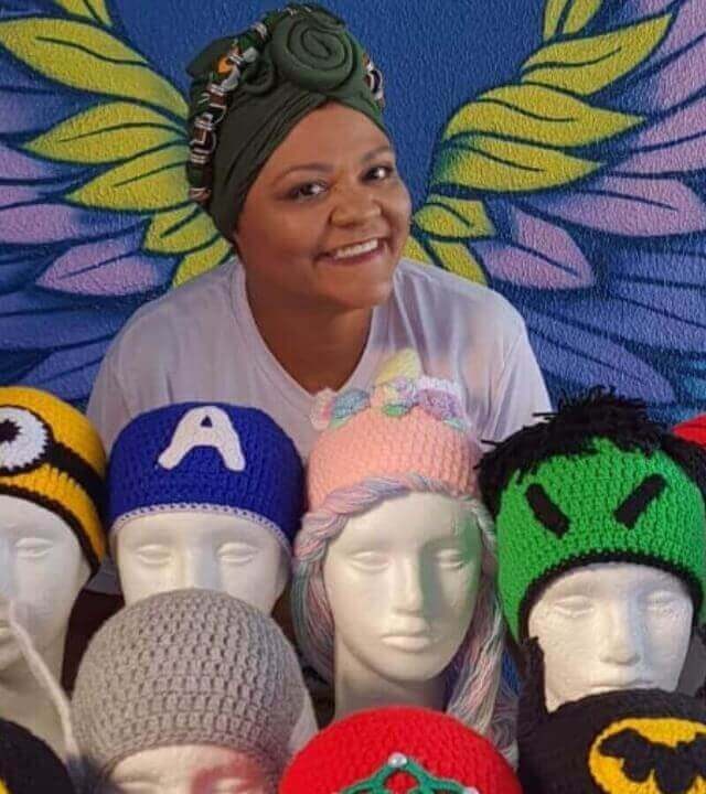 Hoje, as voluntárias fazem toucas e perucas que representam 15 personagens conhecidos do universo infantil. Além disso, também há itens para adultos que são pacientes oncológicos e almofadas para mulheres mastectomizadas.