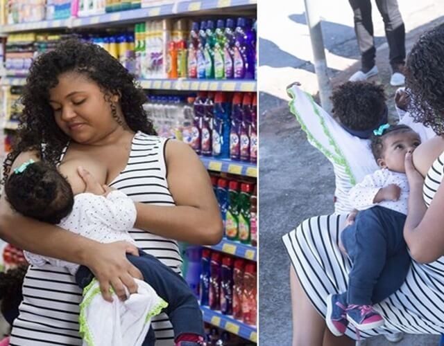“Com a intenção de trazer uma reflexão para esta questão, realizei algumas imagens da Larissa, onde é possível ver que não tem lugar, hora, que a mamãe precise amamentar”, afirma.