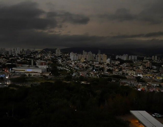 Na tarde desta segunda-feira (19), por volta das 15h, o céu ficou encoberto por nuvens e o “dia virou noite”. Após 13 dias sem chuva, Jundiaí recebe uma nova frente fria com chuva e temperaturas baixas.