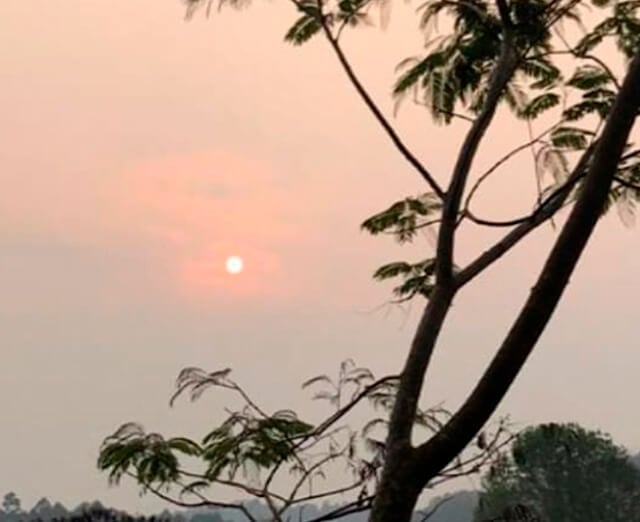 Imagem de satélite da manhã deste sábado confirma a projeção do modelo de dispersão atmosférica de aerossóis do consórcio europeu Copernicus que projetava para este fim de semana o corredor de fumaça vindo da Amazônia e do Pantanal sobre o Mato Grosso do Sul e a Região Sudeste. Além da fumaça, havia ainda uma camada de nuvens, o que contribuía para alterar a coloração do céu.