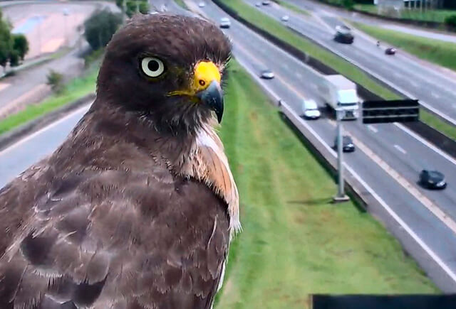 Mais uma vez, um gavião-carijó pousou em frente à câmera de monitoramento de tráfego da CCR AutoBAn, localizada no quilômetro 97 da Via Anhanguera (SP-330), em Campinas. O flagrante aconteceu na manhã desta segunda-feira (15), por volta das 10h, vinte dias depois de um gavião da mesma espécie também ter parado em frente ao mesmo equipamento, no dia 25 de novembro.
