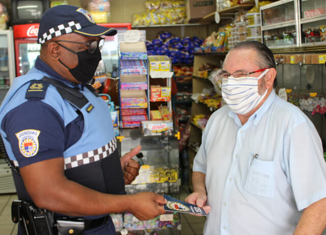 A iniciativa partiu do inspetor Dênis Berni, que comanda os programas Centro e Bairro Seguro, da GMJ, e identificou a necessidade de entregar não só cartões de visita, mas adesivos a serem fixados nos estabelecimentos.