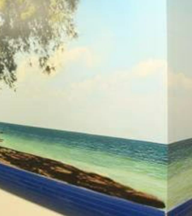 De acordo com Eliana, “a imagem foi montada exclusivamente para esta obra. São três fotografias juntas, do mar da Florida nos Estados Unidos. Aparenta um mar calmo, de águas claras e areia branca, lugar que transmite uma paz inigualável. Minha intenção é despertar o desejo do paciente de estar naquele lugar, se transportar para lá no momento de angústia que estão passando. Ressalto também o trabalho da minha equipe parceira ServDecor, que garantiu que tudo ficasse perfeito.”