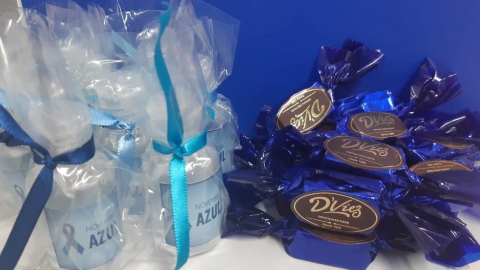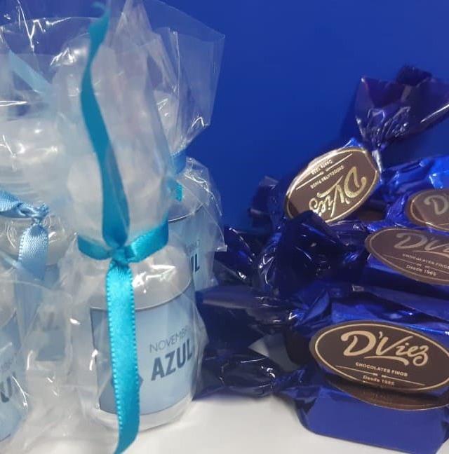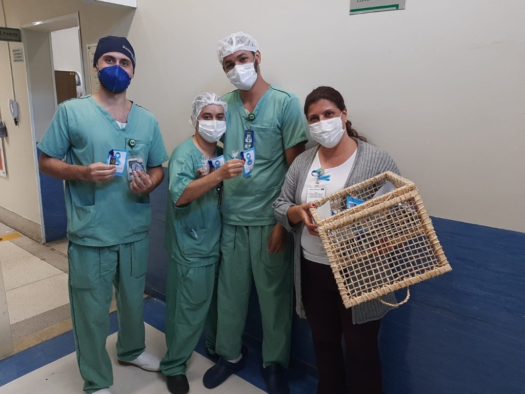 Um painel foi confeccionado pela Comissão de Eventos e Humanização onde os profissionais puderam tirar fotos e brincar com as figuras que remetiam a mensagem da campanha. Durante os dias foram entregues bombons fornecidos pela D’ Viez Chocolates Finos e álcool em gel com um laço azul da empresa de adestramento de cães, Abana o Rabo.