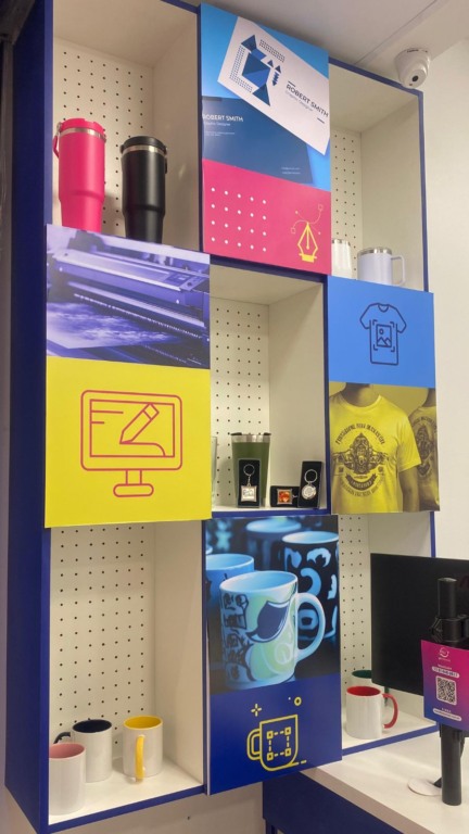 Na nova unidade, os clientes encontram opções para personalizar camisetas, copos, canecas, mouse pads, capas de almofadas e outros presentes criativos. A loja também oferece uma linha completa de papelaria personalizada, que inclui cartões de visita, convites, adesivos e impressões para projetos de arquitetura e engenharia.