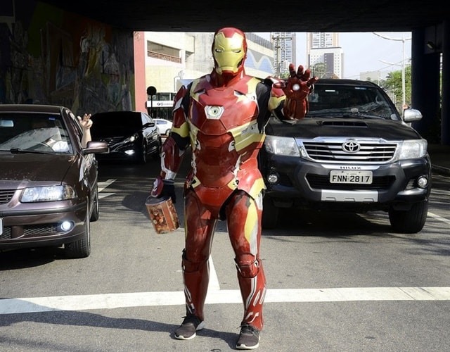 O ex-comerciante conta que a ideia de se vestir como o super-herói da Marvel para arrecadar dinheiro surgiu há dois meses quando ficou desempregado. “Depois que perdi o emprego é o que está me mantendo”, detalha.
