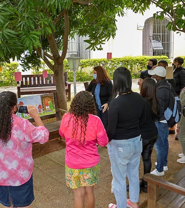 Tatiana Gonçalves da Silva, professora de Língua Inglesa da Educação de Jovens e Adultos (EJA), contou sobre o que eles realizaram. “Usamos nosso lindo espaço de convivência para realizar a leitura do livro em inglês, utilizando todos os cantos do local. Em seguida, nós vivenciamos um momento de socialização com um café da manhã, uma proposta que estava no livro também”, contou.