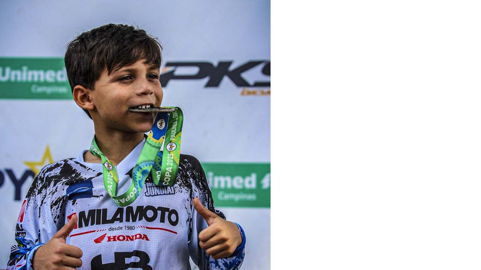 Lucca começou a praticar BMX aos 4 anos e já acumula conquistas: é Campeão Paulista 2024 e Campeão das Copas Regionais do mesmo ano.