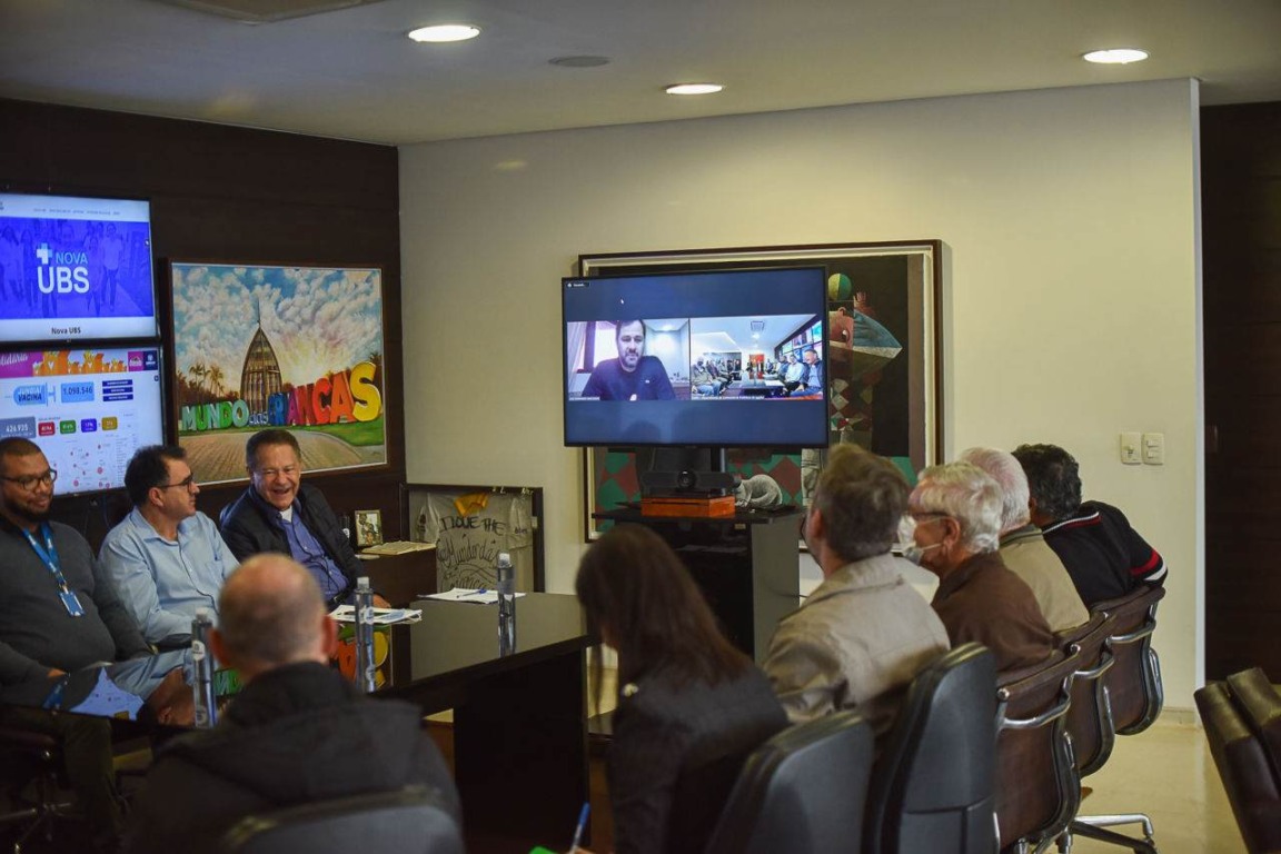 Eles foram recebidos pelo vice-prefeito Gustavo Martinelli e pelos gestores José Antonio Parimoschi, da Unidade de Gestão de Governo e Finanças, e Gustavo Maryssael, da Casa Civil. O prefeito Luiz Fernando Machado participou da reunião através de uma ligação por vídeo. Também estiveram presentes gestores e técnicos da Unidade de Gestão de Infraestrutura e Serviços Públicos (UGISP) e da DAE Jundiaí.