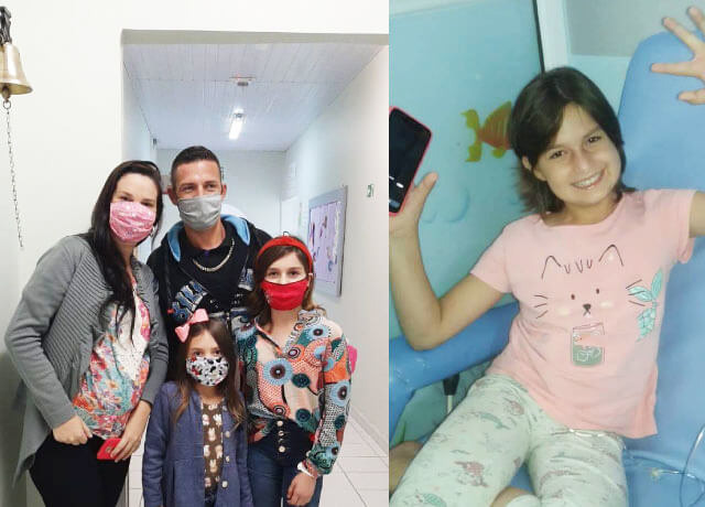 “É uma alegria muito grande. Uma felicidade imensa!”, diz a mãe Paula Ferreira Cizotto, de 27 anos, sobre o sentimento de ver a filha concluindo o tratamento com sucesso. “Foram momentos difíceis, mas Deus nos deu força”.