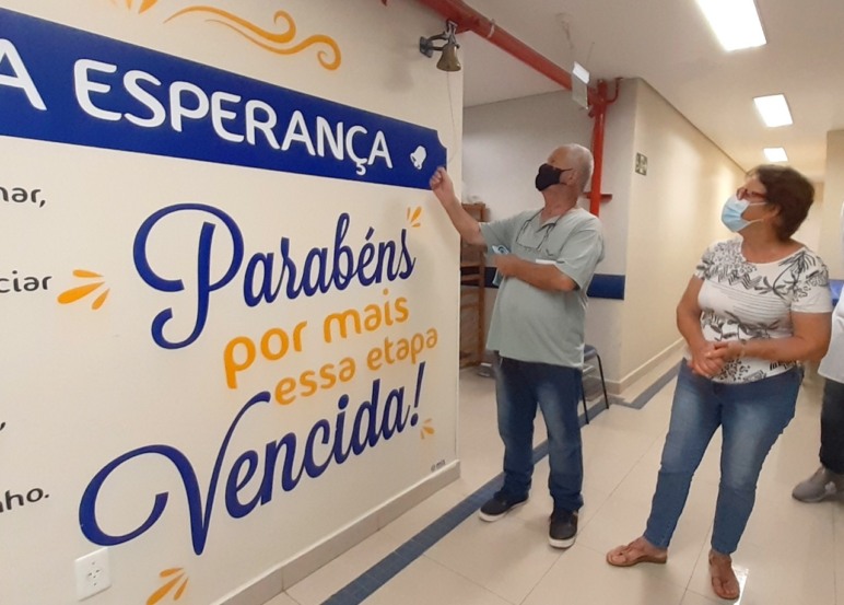 A iniciativa da criança foi revelada ontem (24) pelo paciente, no momento em que encerrou as 35 sessões de radioterapia no São Vicente. Diagnosticado com câncer bucal, Pereira tocou o sino da esperança, símbolo da vitória contra a doença.