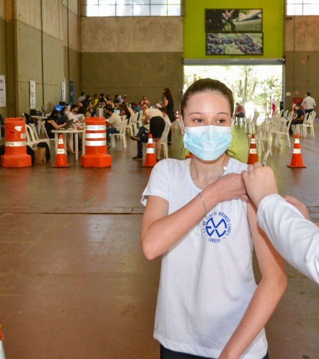A comerciante Renata Mendes foi ao local levar o filho Kaynan e a sobrinha Leandra. “Como eles são menores de idade, trouxe eles aqui para se vacinar e fiquei sabendo sobre o Mutirão. Está tudo bem organizado.”