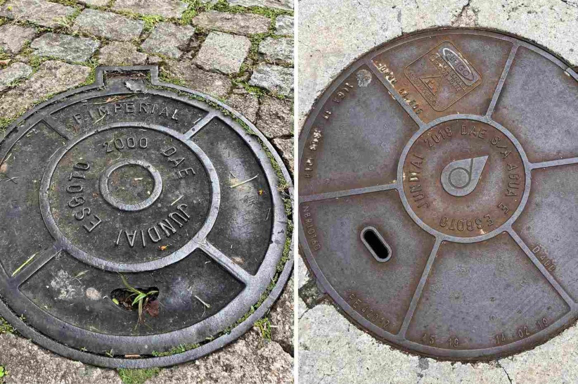 Na rua Barão de Jundiaí, no Centro, e em outros bairros mais tradicionais da cidade, como a Vila Arens, a Vila Rio Branco e a Ponte São João, o tampão de PV mais antigo é datado de 1904, ano em que teve início o serviço de esgoto no município.
