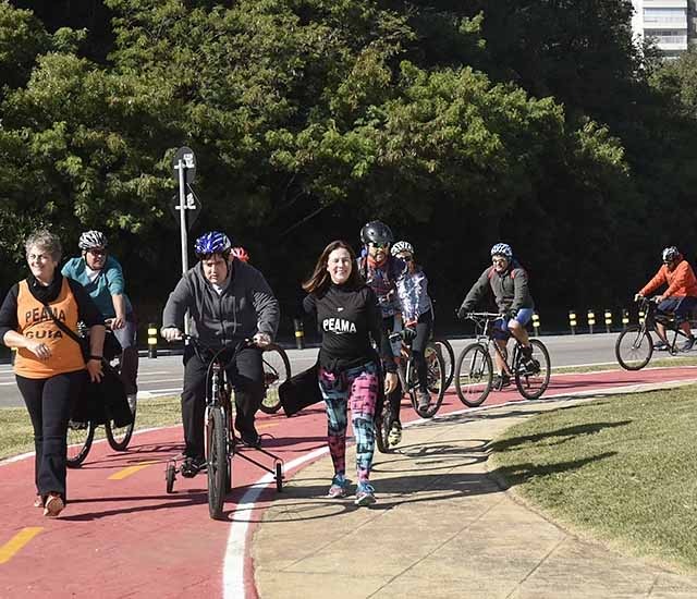 Ao final, pediu uma salva de palmas para os ciclistas do PEAMA – Programa de Esportes e Atividades Motoras Adaptadas – que, ao lado do grupo internacional de ciclistas Seven Bikers, “estreou” oficialmente a ciclovia.