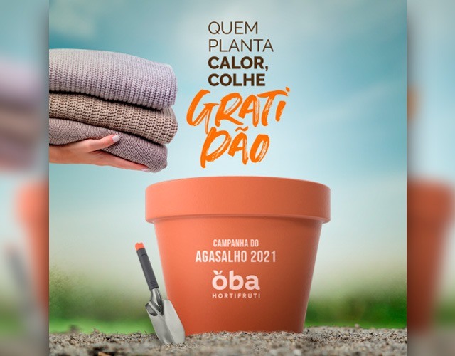 O Oba Hortifruti iniciou a Campanha do Agasalho de 2021 nesta segunda-feira (11), em todas as lojas da rede. “Quem planta amor, colhe gratidão” é o slogan da campanha, que segue até o dia 30 de julho e visa incentivar clientes e colaboradores a arrecadar itens de inverno para serem doados a entidades carentes locais.