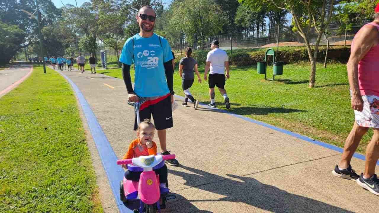 O professor de Biologia Marco Antonio Gomes é um exemplo de pai que busca proporcionar à filha Heloísa, de apenas 11 meses, momentos que incentivam a qualidade de vida. “Desde que ela nasceu, eu e minha esposa sempre estamos com ela nas corridas e caminhadas aqui pelo Parque, que é um local seguro e muito agradável”, afirma.