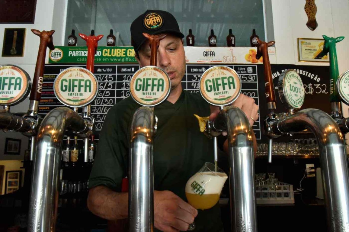 Foi com o pêssego da Família Bardi que o Marcelo idealizou uma cerveja especial para a cidade. A Sour Peach, que era para ser uma produção sazonal, ficou fixa no cardápio. “A recepção dos clientes foi tão boa que mantivemos no cardápio. O estilo base dela é uma cerveja voltada para a fruta e o frescor, com menor teor alcoólico e mais acidez. E o melhor, com o pêssego de Jundiaí”, explicaram Marcelo Giffoni, proprietário da Giffa Cervejaria, e Henrique Matsuno, mestre cervejeiro.