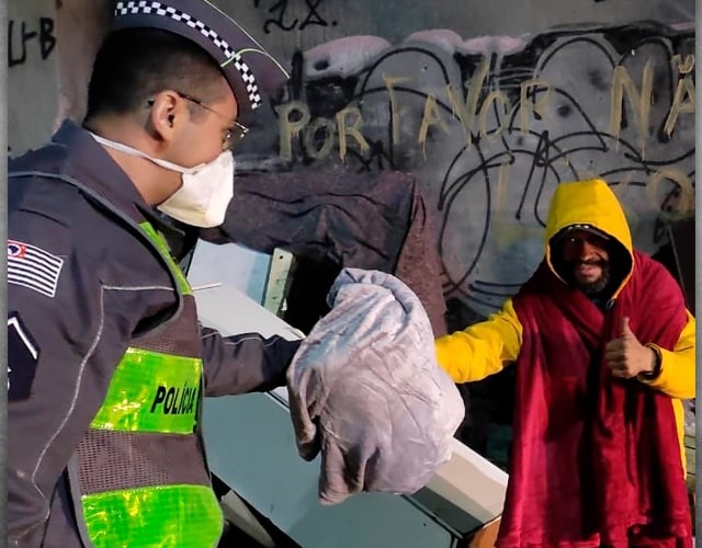 Ações sociais de grupos e ONGs, além do trabalho realizado pelos órgãos públicos, tentam minimizar esse problema – principalmente para aqueles que preferem não se abrigar em locais públicos disponibilizados. Na madrugada de quarta (28), foi a vez da Polícia Militar colaborar com essas pessoas.