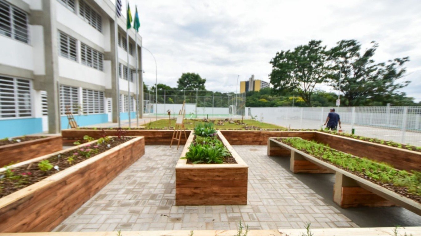 A EMEB Professor Joaquim Candelário de Freitas conta com 4,7 mil m², com três pavimentos, laboratórios, anfiteatro, biblioteca, 20 amplas salas de aula, quadra coberta, elevador e acessibilidade em todas as dependências. Além disso, a unidade é sustentável. Essa é a primeira escola que conta com dispositivos como energia fotovoltaica, reuso da água de chuva para a limpeza de áreas externas e aquecimento solar.