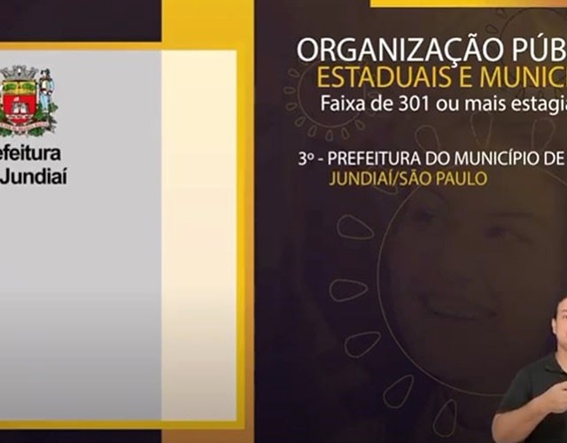 A Prefeitura de Jundiaí foi umas das três vencedoras na categoria “De 51 a 300 estagiários” (3º lugar), ao lado da Fundação Funape (2º) e da Câmara Municipal de São Paulo (1º).