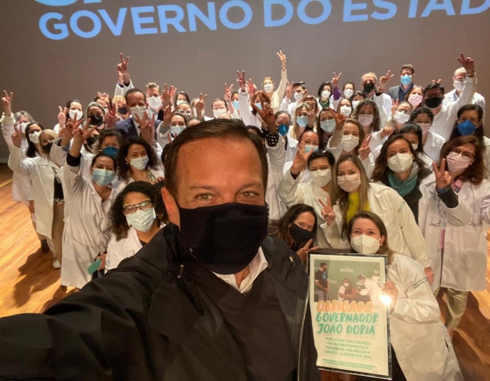 Na rede social, o governador publicou uma foto com todos os profissionais e agradeceu. “Emocionado com a homenagem e carinho que recebi aqui em Jundiaí de profissionais de saúde e do prefeito Luiz Fernando Machado. Uma linda lembrança que destaca a nossa luta pela ciência e pela vida. Ofereço essa homenagem aos cientistas e os mais de 2 milhões de profissionais de saúde que atuam no Estado de SP. Vocês são os verdadeiros heróis dessa pandemia”, escreveu.