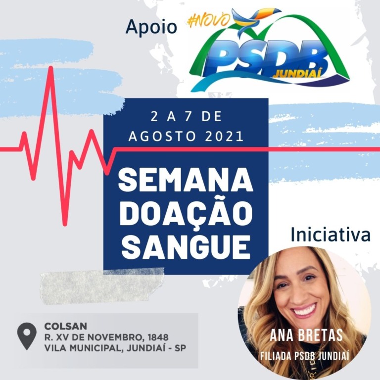 O diretório municipal do PSDB realiza, na próxima semana, a terceira edição da campanha ‘Sangue Tucano’ para doações à Colsan. A partir da próxima segunda (2), entre 7h30 e 11h30, os filiados estão convidados a ajudar a aumentar os estoques da entidade.