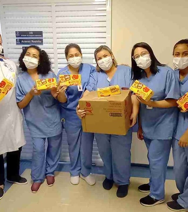 O Sérgio Bueno, de 52 anos, precisou ser internado no Hospital de Caridade São Vicente de Paulo (HSV), e durante cinco dias, recebeu os cuidados da equipe da Unidade de Suporte Intermediário (USI). Após sofrer um infarto e presenciar o dia a dia dos profissionais de saúde, Sérgio decidiu voltar a instituição e, como forma de retribuir o carinho, presentear a equipe com caixas de chocolate.