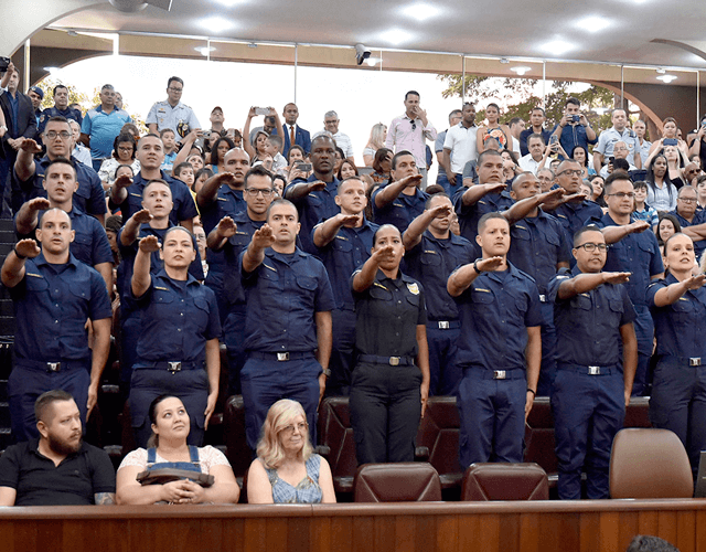 “A Guarda Municipal de Jundiaí completa 70 anos cada vez mais próxima da comunidade, uma instituição extremamente forte e que faz a diferença no servir as pessoas, ao interesse público. A lealdade de seus integrantes é um princípio claro e valoroso; um benefício muito significativo ao cidadão jundiaiense”, disse o prefeito Luiz Fernando Machado na sessão solene de sexta-feira, realizada na Câmara Municipal de Jundiaí.