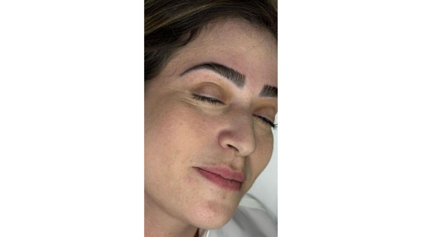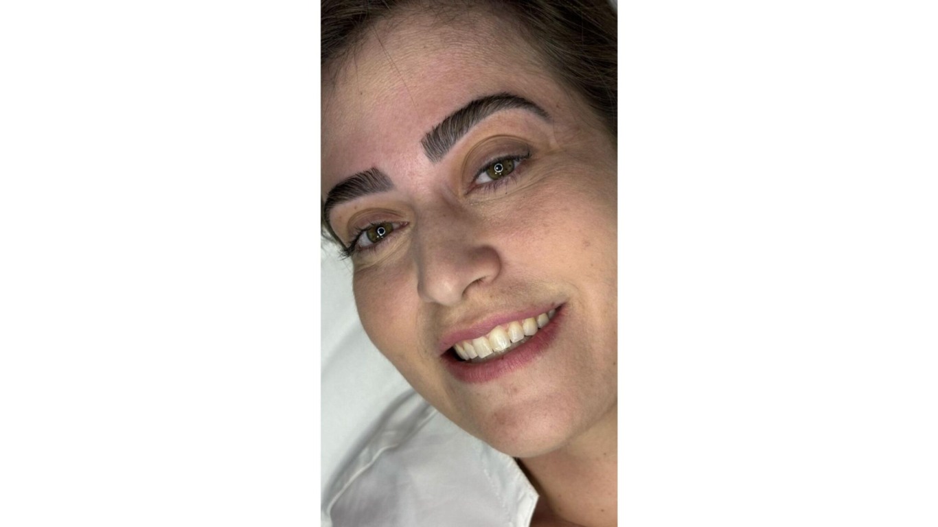 O pigmento, que havia escurecido além do desejado, e a cauda das sobrancelhas muito baixa geravam um efeito de olhar caído. Foi então que ela optou pela remoção a laser — uma técnica cada vez mais procurada por quem busca redefinir a própria imagem com leveza e autenticidade.