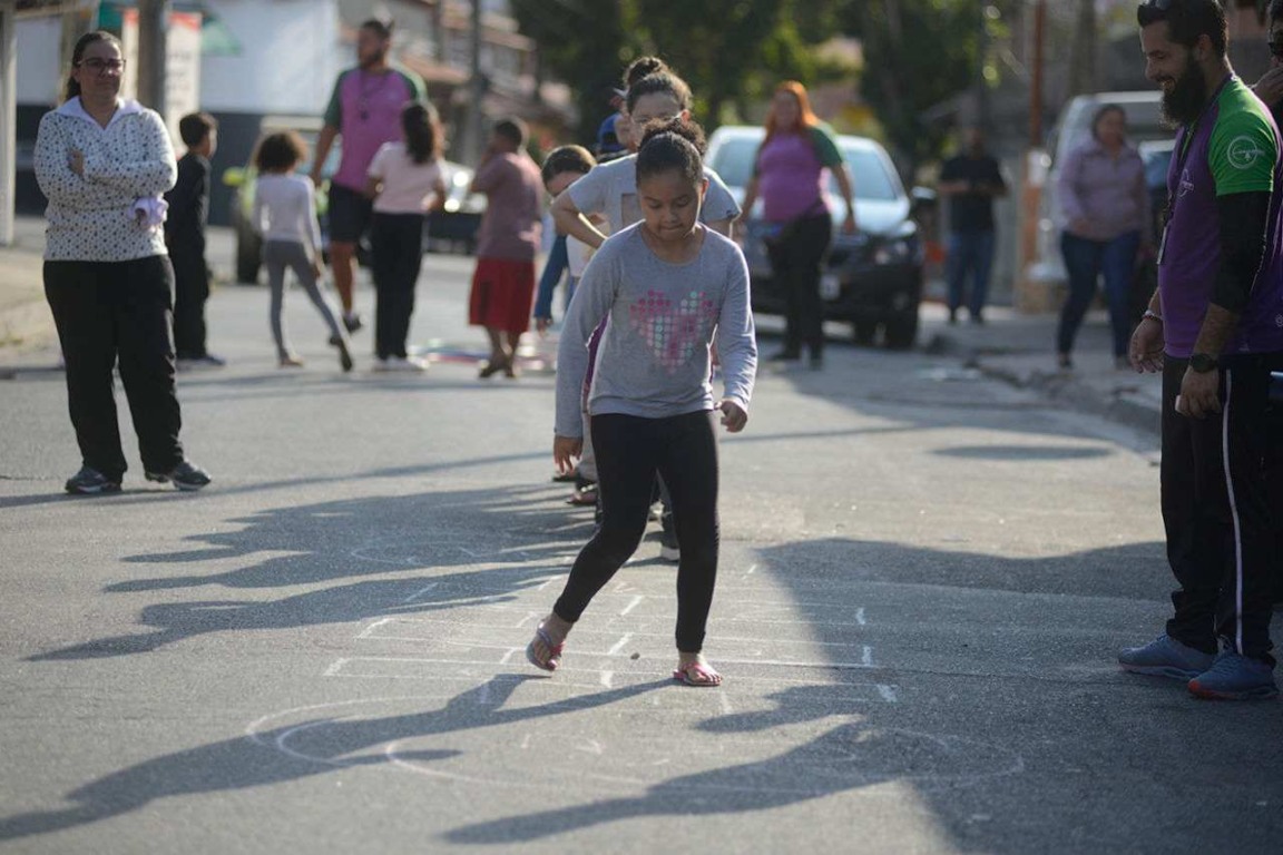 No meio da bagunça, Yasmin, de 8 anos, era uma das mais empolgadas. A menina corria, pulava e se divertia. Ao lado, a mãe Tatiane Carvalho dos Santos, de 38 anos, não escondeu a alegria de ver a filha vivenciando esse momento. “Essas ações são muito importantes para que as crianças brinquem uma com as outras, como nós brincávamos na rua antigamente”, comentou. Em uma rápida parada para conversa, Yasmin contou estar aproveitando muito o momento: “Está sendo muito legal brincar aqui com os meus amigos”, disse a menina, antes de correr novamente junto da turma.